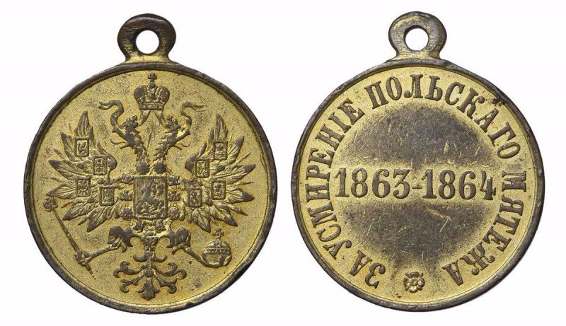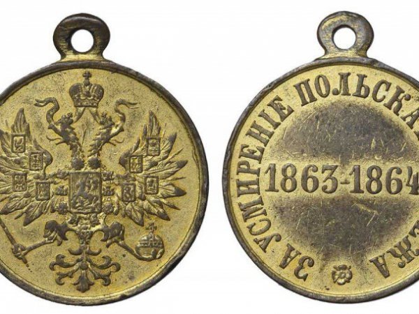 -медаль «За усмирение польскаго мятежа» Російської імперії, якою відзначали учасників придушення повстання 1863-1864 років в Царстві Польському, Північно-Західному краї і Волині;