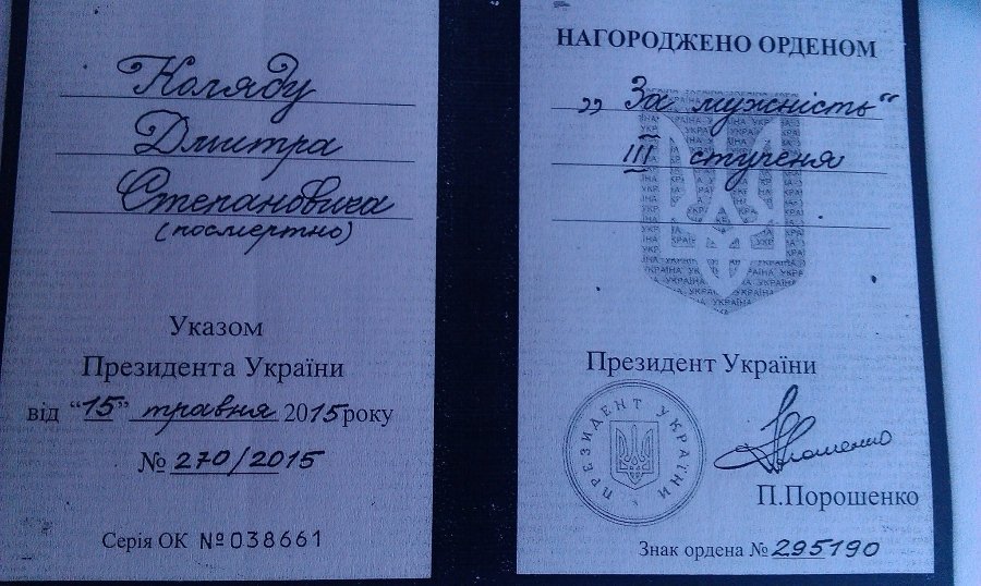 "Дмитро Коляда, танкіст, після демобілізації призвався добровольцем в друге, нагороджений орденом за мужність. Загинув від руки свого командира на территориї 14ї бригади міста Володимир-Волинський. Дякую швейцарським друзям за надану гуманітарну допомогу родині танкіста. Окрема подяка Наталі Соколовій за підтримку родини", - йдеться у дописі.