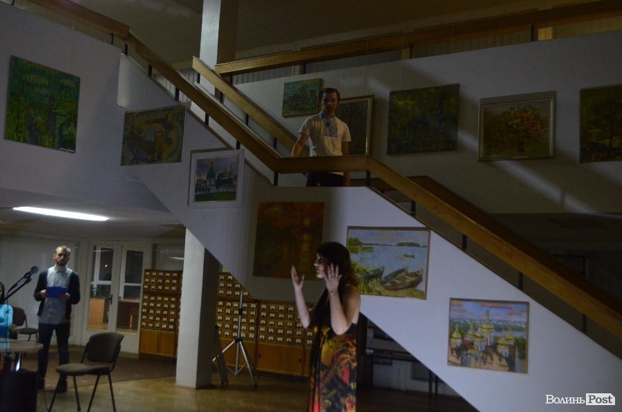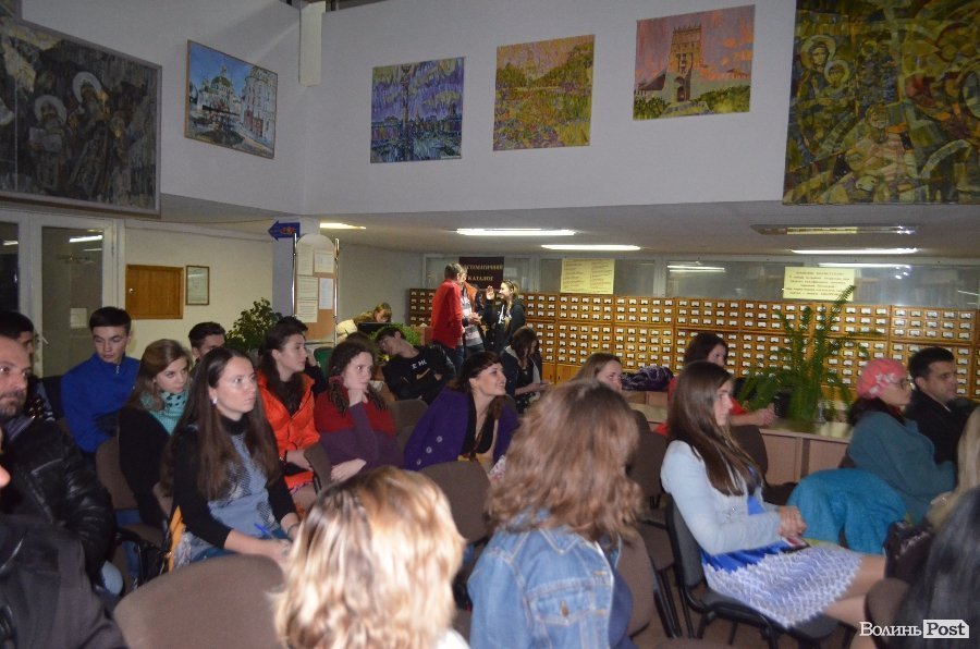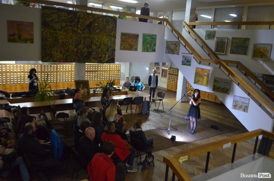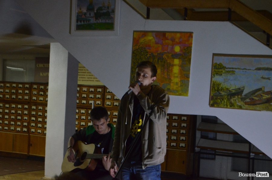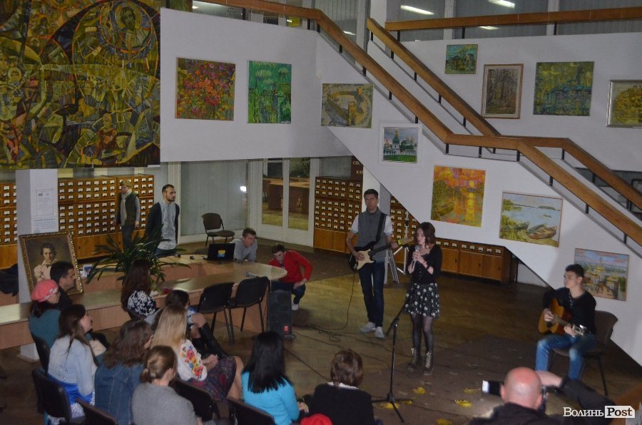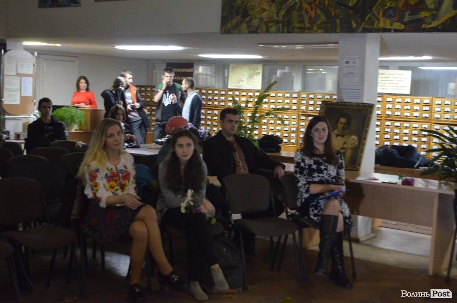 «Вирішили провести такий літературно-акустичний вечір до Дня української писемності та мови, бо у Луцьку насправді є багато талановитих людей, які пишуть вірші, співають, є чудові дівчата, Наталя і Ксенія, в них взагалі свій аматорський театр. Ми з ними проводили деякі акції раніше. От вони запропонували, давайте зберемося, поспіваємо патріотичних українських пісень, згадаємо майданівські посиденьки, те, що було біля майданівської бочки. У нас ще буде одна подібна вечірка, теж присвячена Дню української писемності та мови, але поза межами біблітеки, це трохи згодом», - розповіла один із організаторів заходу, голова громадської організації «Інститут волонтерства та громадської співпраці» Юлія Євпак.