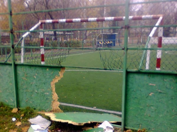 Поблизу школи №23 невідомі хулігани спотворили міні-футбольний майданчик, зламавши огорожу за воротами.