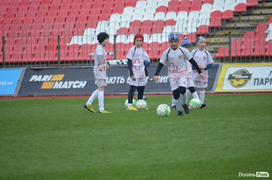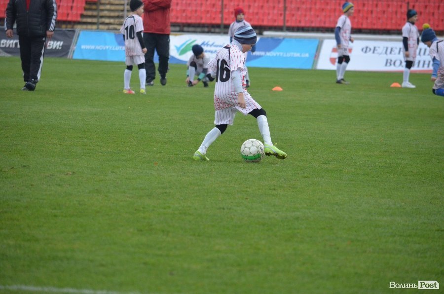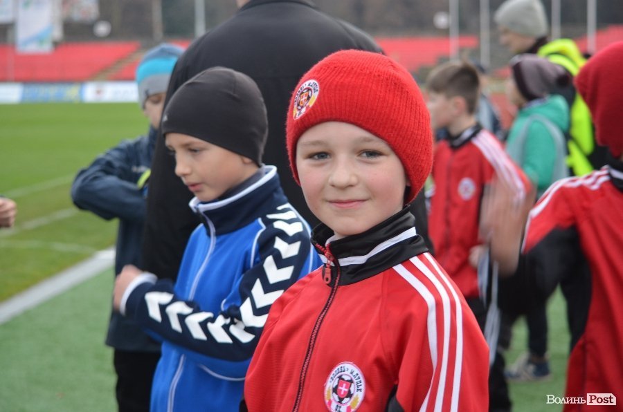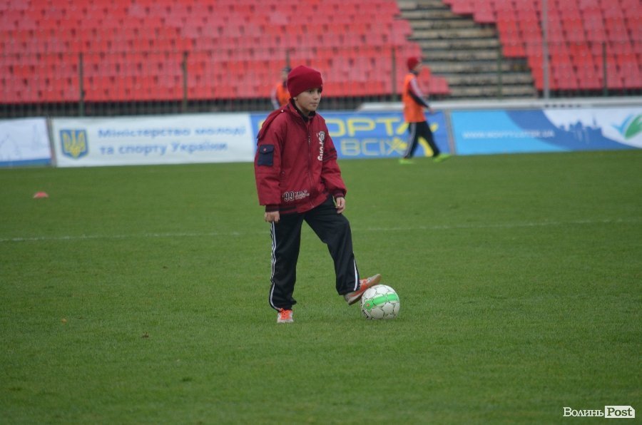 Юні вихованці дитячої футбольної школи ФК «Волинь» старанно виконували всі вказівки тренерів і футболістів, які підказували їм, як правильно бити і пасувати м’яч, та вчили інших тонкощів професійного футболу.