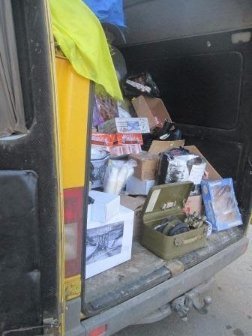 Допоки ми спілкувалися з Сергієм, до жовтого мікроавтобусу «Серця патріота» під’їхав бієць 14-тої ОМБ, також новообраний депутат Луцької міськради від УКРОПу Олександр Кравченко. Він привіз солдатам дитячі малюнки та солодощі. Волонтери жартують, що ці дитячі шедеври слугуватимуть шпалерами стін кубриків солдат.