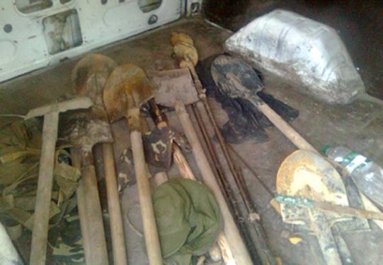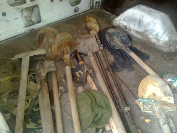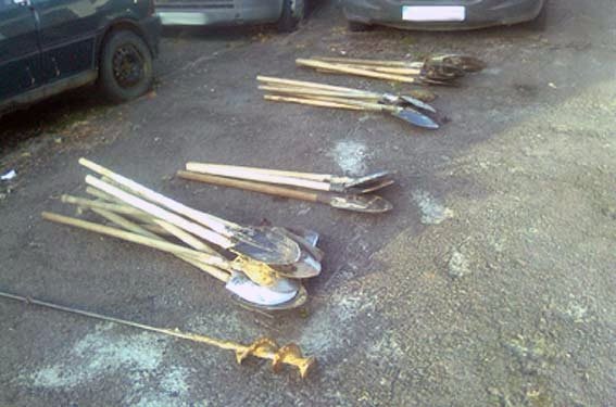 У затриманих вилучили 25 штикових лопат та один пристрій для утворення отворів у ґрунті – бур.