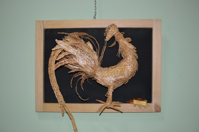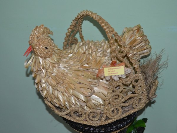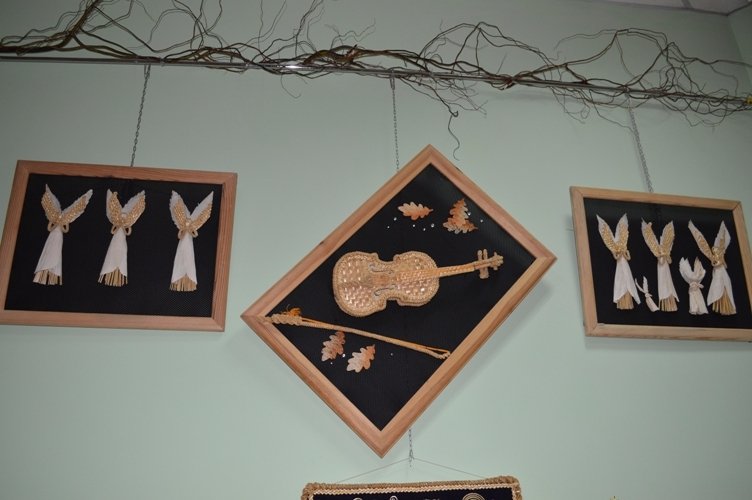 На виставці представленні настінні прикраси, композиції, аплікації, скульптура. Жінка впродовж багатьох років захоплюється соломоплетінням.