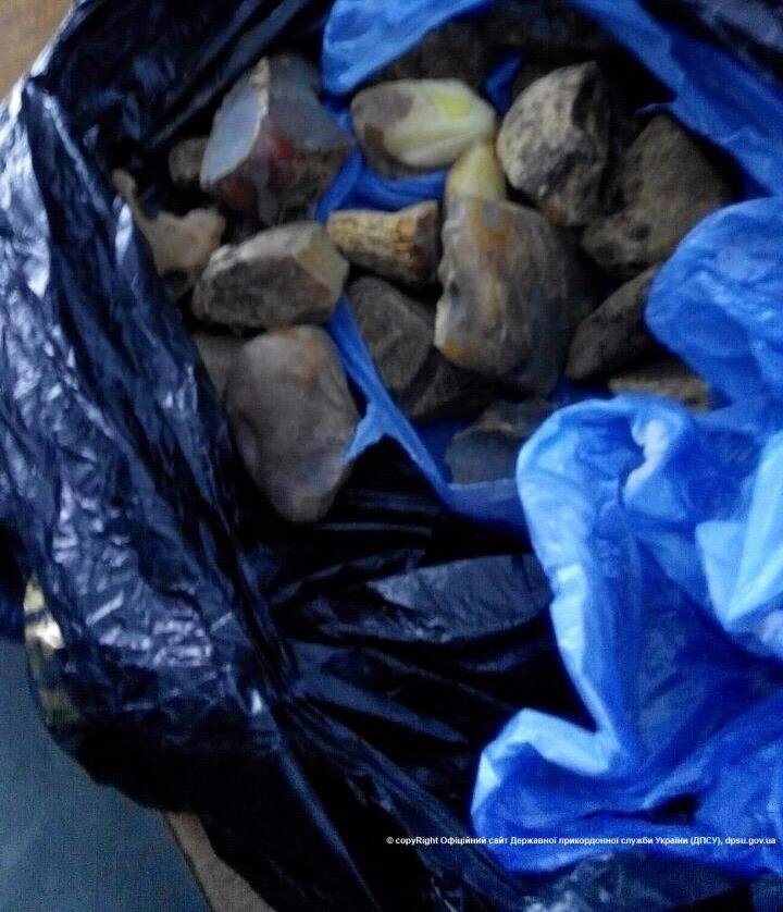 Прикордонники Луцького загону та працівники митниці під час поглибленого огляду салону автомобіля, під заднім пасажирським сидінням, виявили пакунки. В них знаходилося понад 5 кілограмів каміння бурштину різних розмірів.
