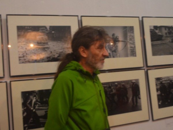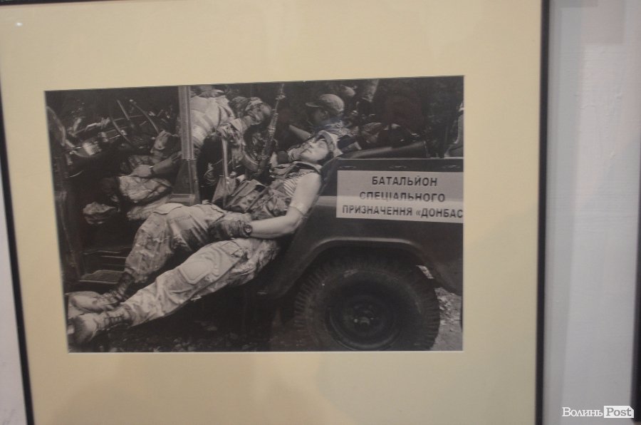 Під час презентації він і розповів гостям фотовиставки історії декотрих світлин і про людей, зображених на цих фото. Загалом це світлини з Майдану, а також із зони АТО.