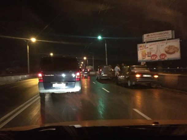 «ДТП на мості Перемоги. На вечір морозець вдарив і мокрий асфальт покрився тонким шаром криги, добре що почали вулиці піском посипати. У мене хоч і нова зимова гума, все одно дуже слизько, на «дзеркалі» автівку важко контролювати на 100%.
