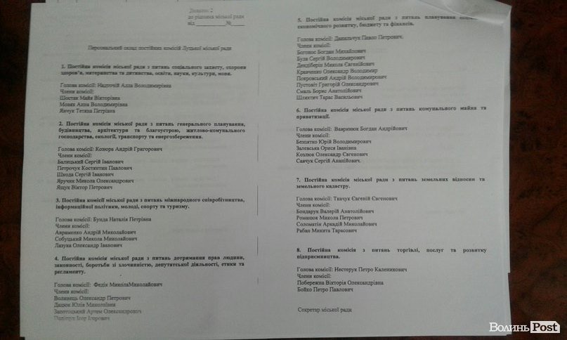 Комісії Луцької міськради: хто куди потрапив. ДОКУМЕНТ