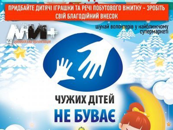 Організація «Ми плюс» в рамках проекту «Чужих дітей не буває» проводить 16-18 грудня 2015 року збір продуктів харчування та дитячих подарунків в супермаркетах міста Луцька.