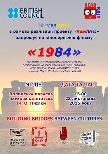 У приміщенні Волинської обласної наукової бібліотеки імені Олени Пчілки відбудеться перегляд екранізації культового роману Джорджа Орвелла «1984».