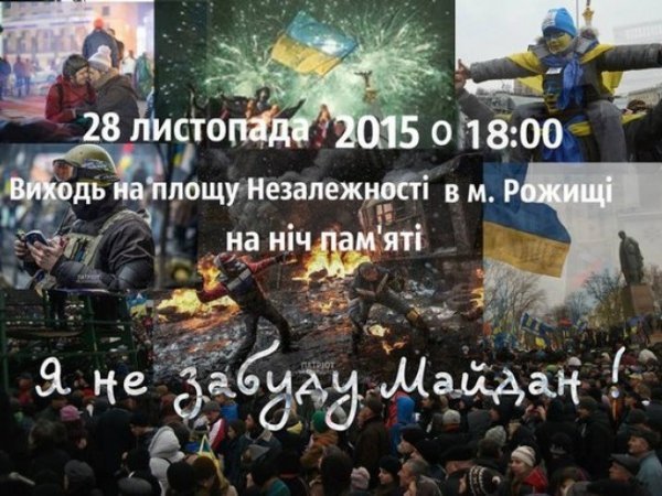 На центральній площі Рожища відбудеться акція, приурочена до подій, які вирували в серці столиці два роки тому, під назвою «Я не забуду Майдан».