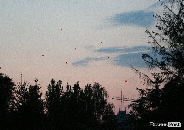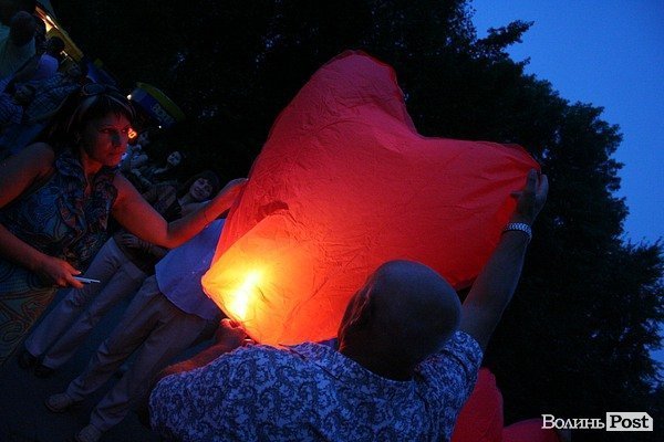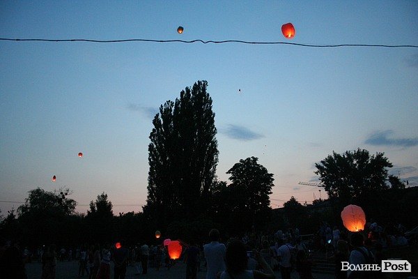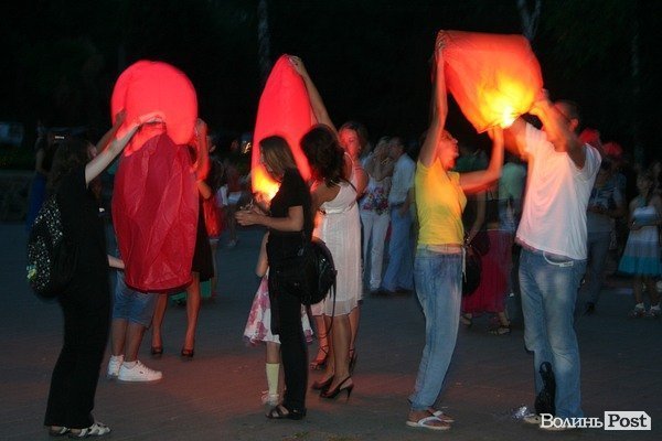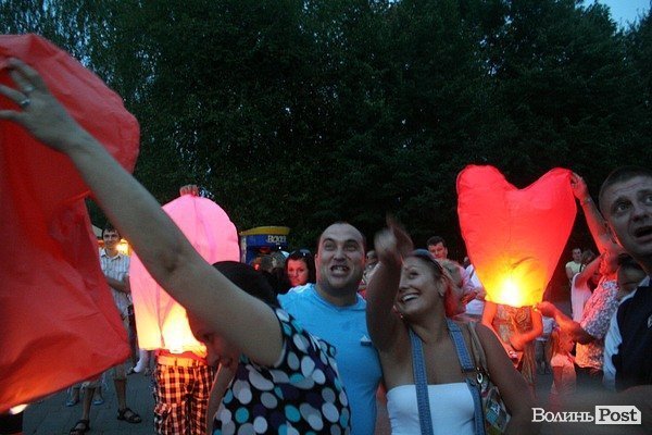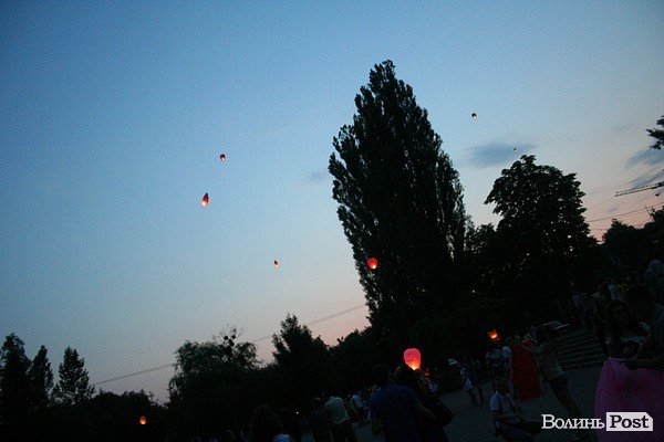 У Луцьку запускали ліхтарики в небо, за допомогою яких закохані зізнавалися один одному в коханні.