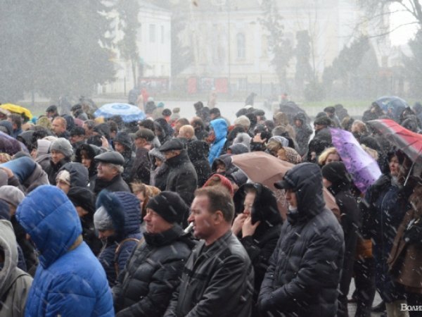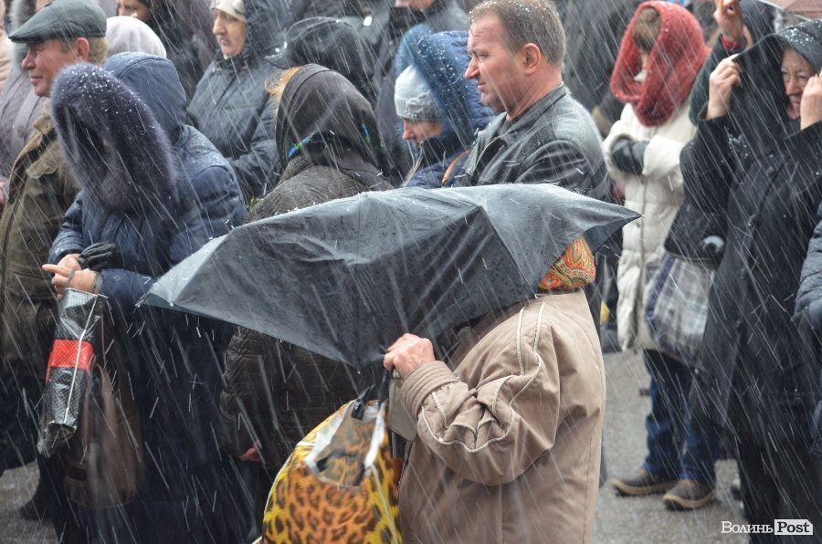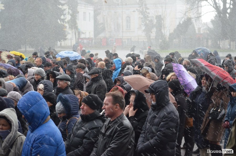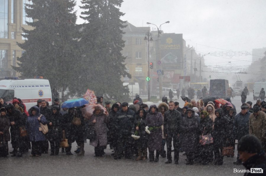 Негода тривала декілька хвилин. Не зважаючи на це, люди продовжували стояти на майдані, щоб віддати останню шану волинському Героєві.