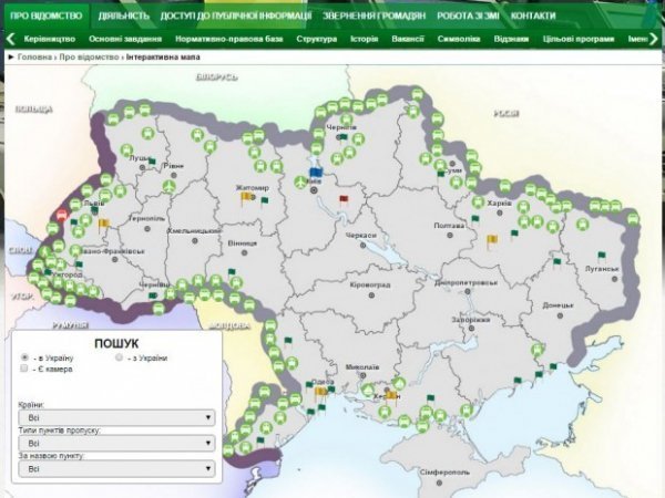 Держприкордонслужба запустила інтерактивну мапу завантаженості основних пропускних пунктів на кордонах України.
