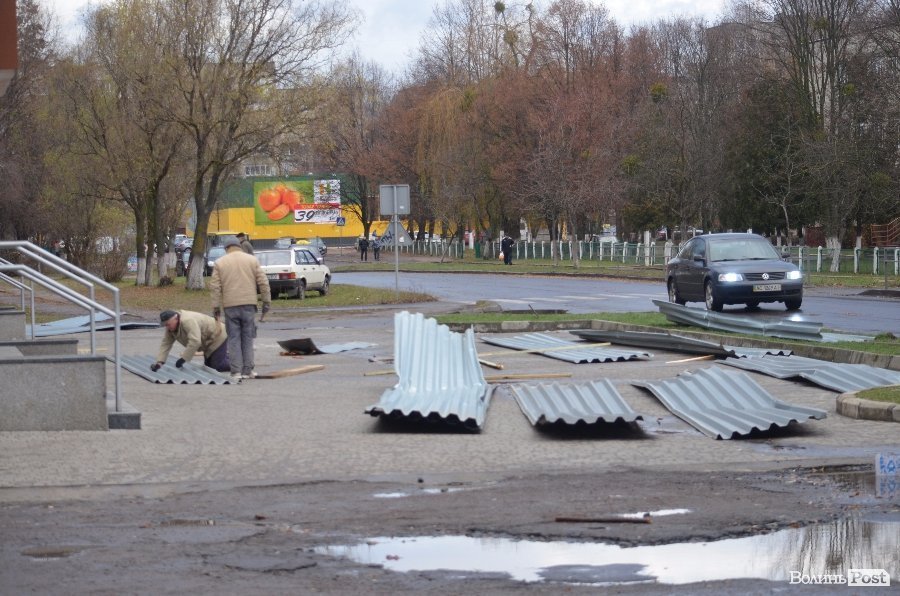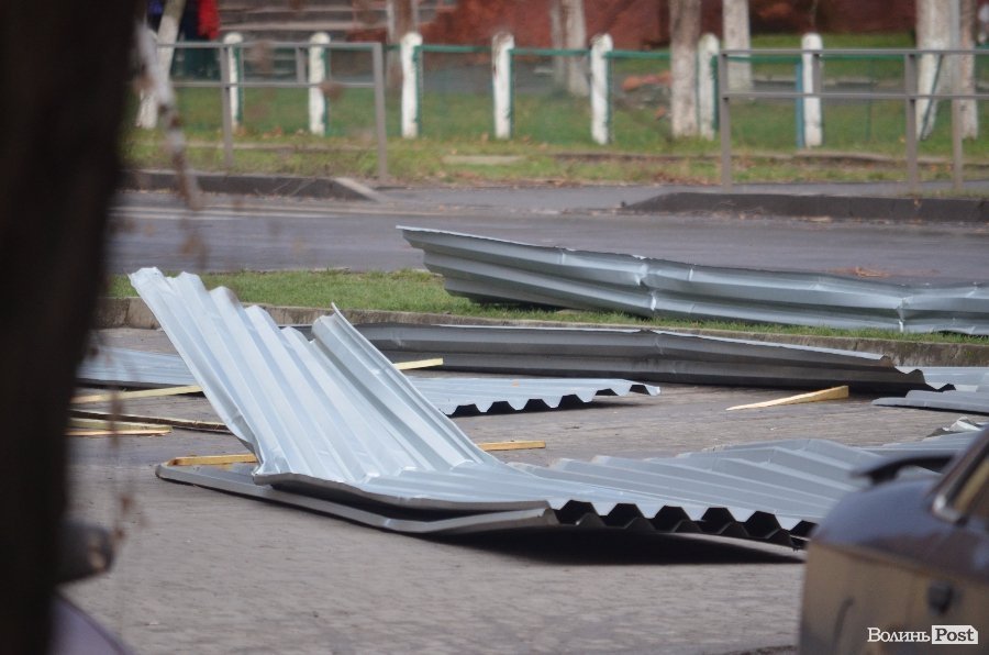 В обласному центрі Волині порив вітру зірвав дах та жбурнув його на автомобілі.