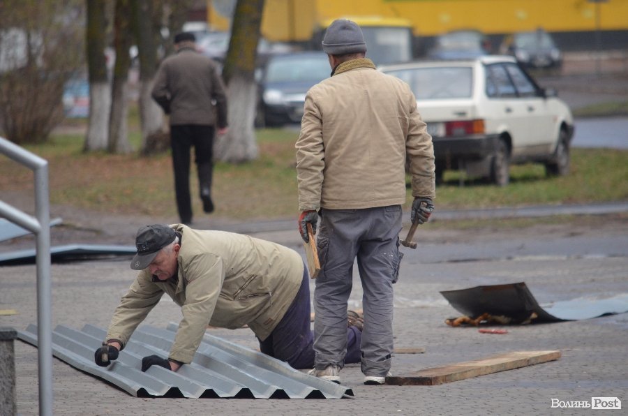 Місцеві жителі розповідають, що відновлення покрівлі розпочалось вже близько обіду. На вулиці не вщухають удари молотком по металу, але мешканців прилеглих будинків вони не турбують.