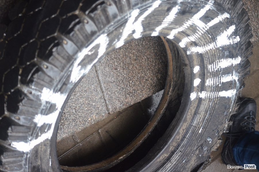 Окрім цього, Чепіжаку передали символічні подарунки – шину, коктейль Молотова та бруківку. Він пообіцяв, що передасть звернення, попрощався та повернувся в приміщення прокуратури.