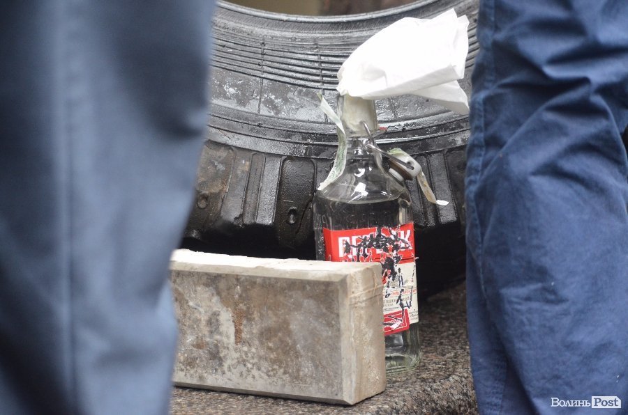 Луцькі студенти принесли прокурору області коктейль Молотова та бруківку. ФОТО