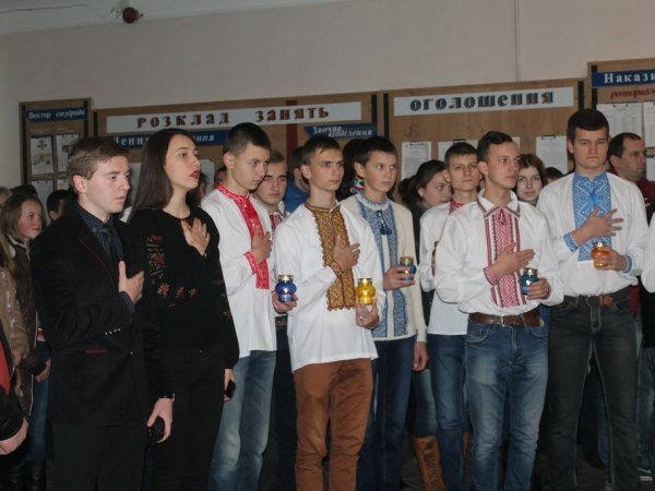 “Ми закликаємо вас сьогодні згадати у ваших молитвах усіх Героїв, які поклали свої голови за наше майбутнє. Хай пам’ять всіх невинно убієнних згуртує нас, живить нас, дасть нам силу та волю, мудрість і наснагу для зміцнення власної держави на власній землі”, – сказала Ольга Ковальчук, заступник директора коледжу із виховної роботи.
