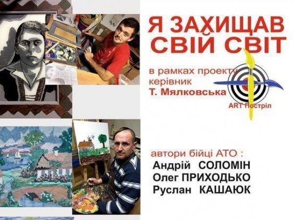 «Я захищав свій світ» – саме під такою назвою відкриється мистецька експозиція трьох воїнів АТО: Андрія Соломіна, Олега Приходька та Руслана Кашаюка, повідомляють у Facebook-спільноті "Меценати для солдата".