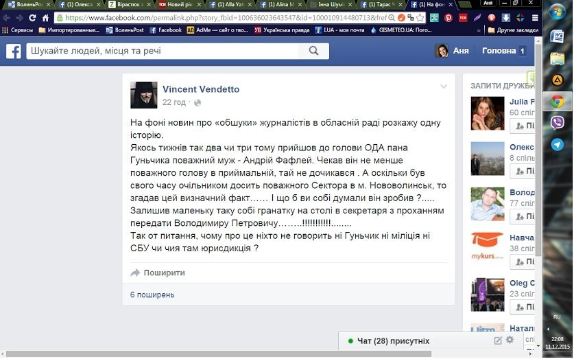 Зокрема, зазначалося, що близько двох тижнів тому активіст Правого сектору Андрій Фафлей прийшов під кабінет голови ОДА, не дочекавшись керівника області, залишив на столі секретарю гранату та попросив її передати Володимиру Гунчику, щойно він з'явиться. Журналісти інтернет-видання запевнили читачів — цю інформацію вони отримали з достовірних джерел.