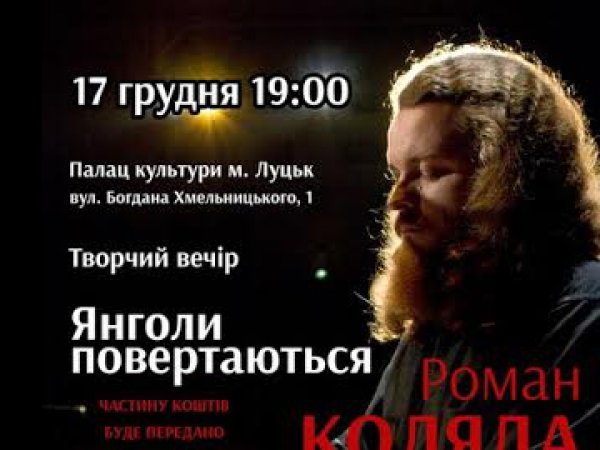17 грудня о 19:00 у Палаці культури м. Луцька відбудеться творчий вечір диякона, піаніста-імпровізатора, журналіста Романа Коляди.