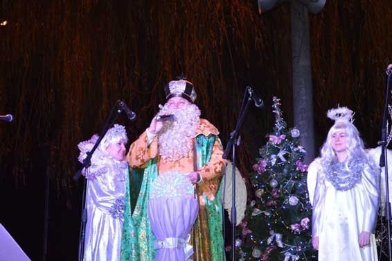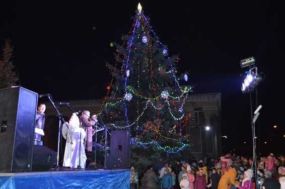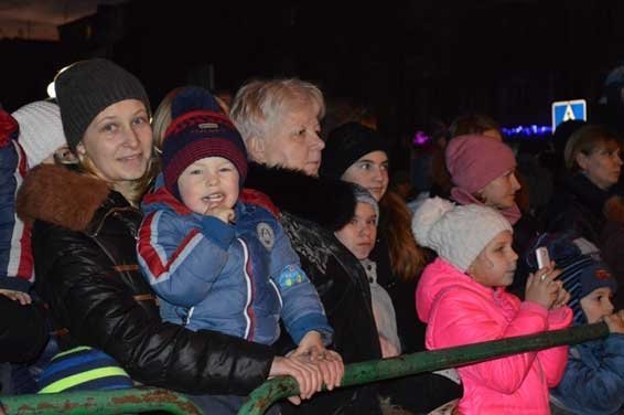 А далі міський голова разом зі Святим Миколаєм засвітили головну ялинку міста. Варто додати, що стилізованою ілюмінацією цьогоріч прикрасили і зелені красуні на площі Героїв Майдану, приміщення будинку рад. До Нового року бульвар Лесі Українки теж вбереться у яскраві вогні.
