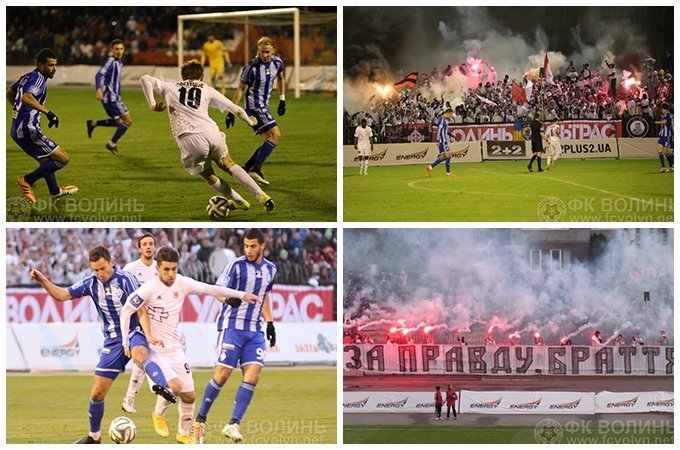 На перших хвилинах ультрас «Волині» розгорнули на 17-му секторі велетенський банер із написом «Господарі свого міста», відразу ж «включився» й немаленький гостьовий сектор. Співали й підтримували свої команди фанати усі 90 хвилин матчу, час від часу об’єднуючись на спільні патріотичні «заряди».