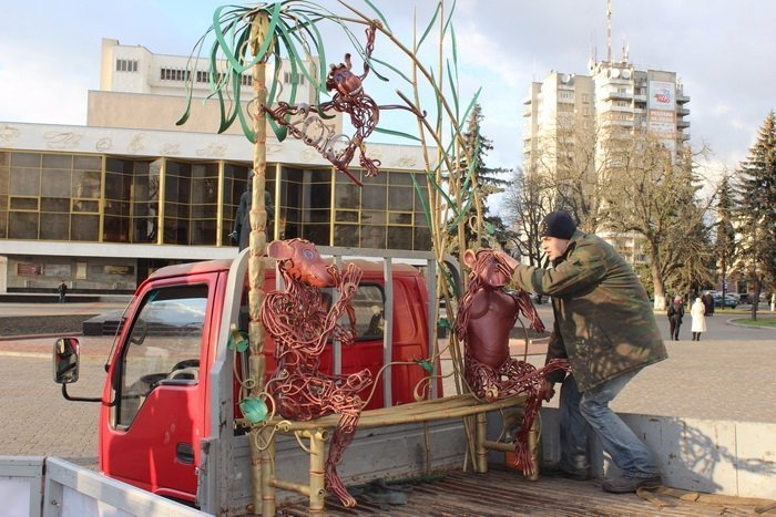 Ці чудові скульптури із металу виготовили спеціалісти одного з підприємств художнього кування (директор Іван Олександрович Возняк). А проект реалізовувався за сприяння радника міського голови з екологічних питань Бориса Сороки.