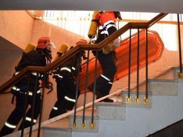 У Луцьку рятувальники тренувались гасити пожежу в найбільшому театрі області.