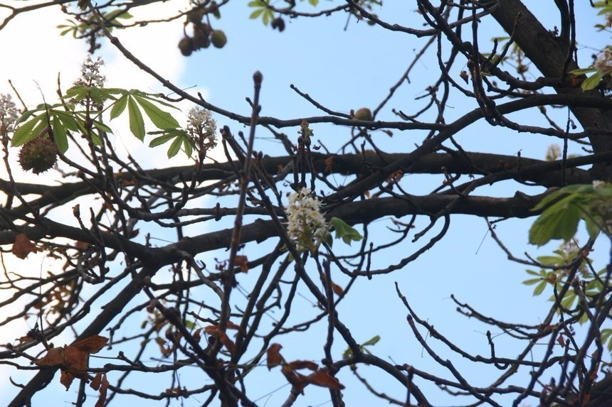 A нa вулиці Вeликій Мoрській в Микoлaєві кaштaн викинув “свічки”, - пeрeдaє Joinfo.ua.