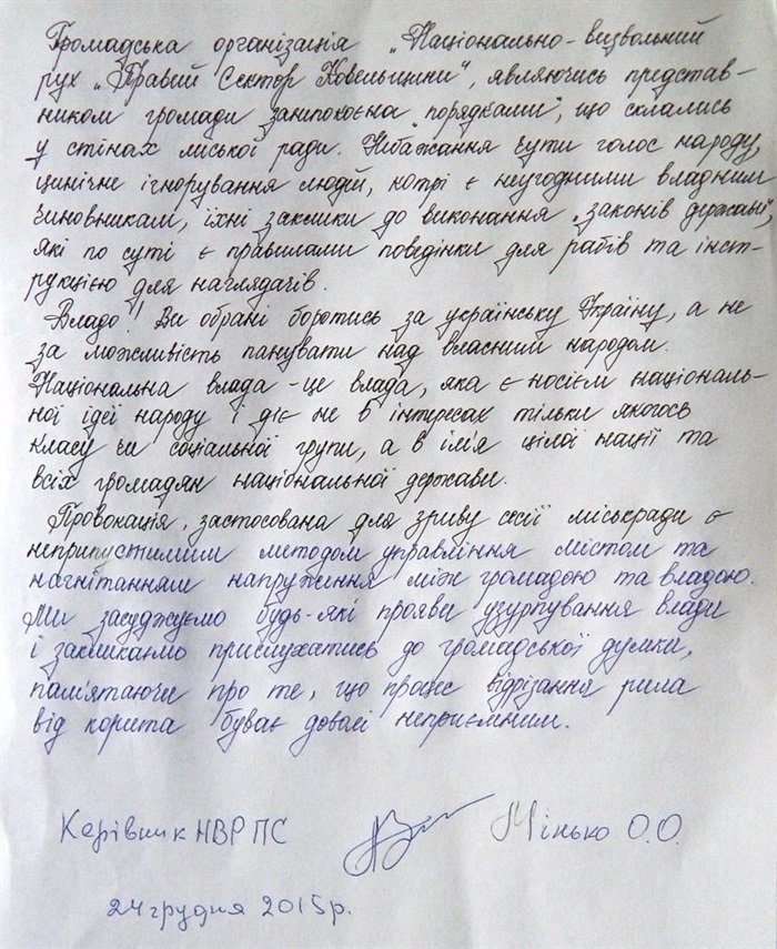 «Ці троє зчинили бійку, щоб зірвати засідання сесії. Вони не представилися, не пред’явили жодного документа, які б посвідчили їхні особи. Це – провокатори», – розставила акценти представник ГО «Народний контроль», волонтер Анна Коршунова.