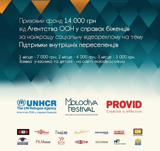 Фестиваль соціальної відеореклами Molodiya Festival спільно з Агентством ООН у справах біженців та креативним агентством PROVID оголошують конкурс на найкращу соціальну відеорекламу щодо проблем внутрішніх переселенців.