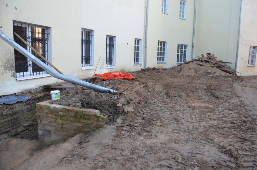 На території пам'ятки роботи ведуть вже давно, зокрема у приміщеннях замінено вікна, двері, розчищені підземелля. Проте позавчора у межах охоронної зони пам’ятки національного значення почали вести будівельні роботи.