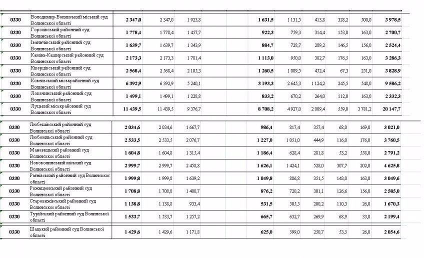 На міські та районні суди Волині запланували 73,3 мільйонів гривень. Найбільше мають отримати Луцький міськрайонний та Ковельський міськрайонний суди – 20 і 9,5 мільйонів.