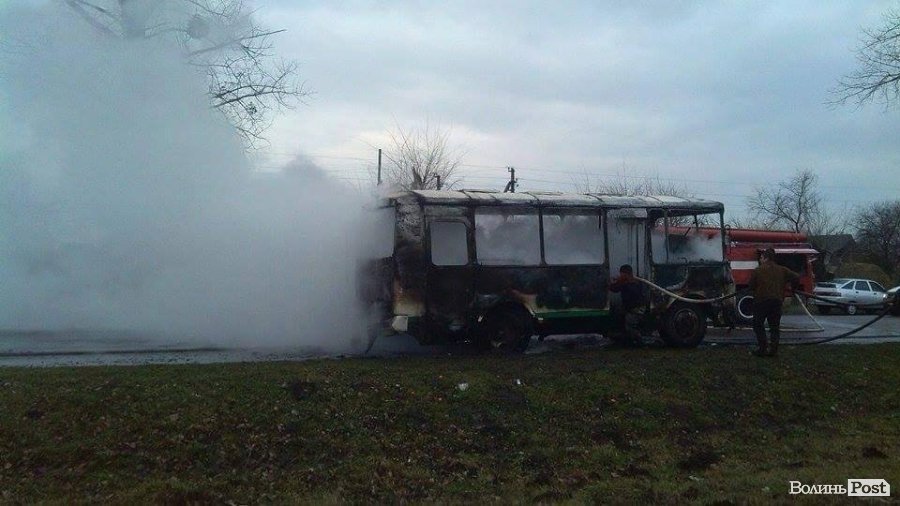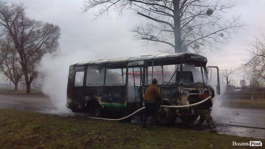 Загоряння автобуса ПАЗ "Луцьк-Берестечко" сталося поблизу села Чаруків у понеділок, 28 грудня.