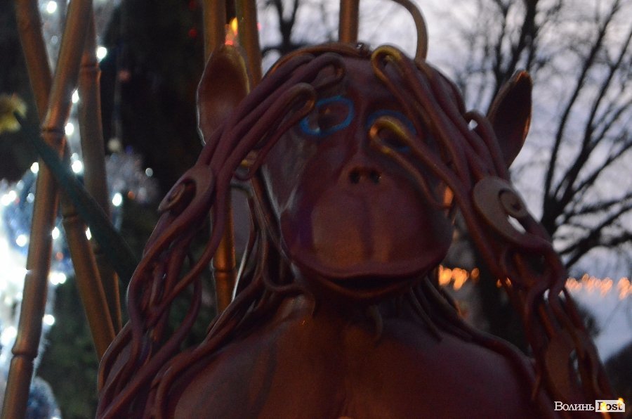 Що ж стосується головної ялинки міста, то за неї взялися ще 8 грудня. На неї повісили 24 метри світлодіодних ламп повздовж і більше 30-ти метрів горизонтально. Окрім цього, для головної зеленої красуні міста цього року зробили декілька нововведень – замість звичного Діда Мороза біля неї поставили Сніговика, а підніжжя ялинки прикрасили символом 2016 року за східним календарем – «червоними Мавпами».