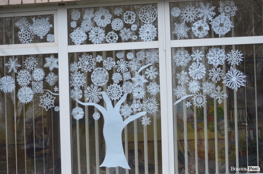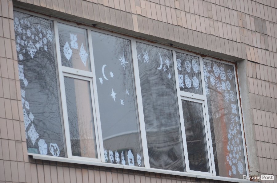 Школи, виші і бібліотеки вирішили обійтися цього року вирізаними з паперу сніжинками – схоже, єдиним снігом, який побачить місто в новорічну ніч. Виші також розташували прикрашені ялинки біля входу у своє приміщення. Хочеться також відзначити міську дитячу бібліотеку, у якій підійшли креативно до прикрашання власного приміщення, і поставили у вікні сніговика, зробленого з книг.