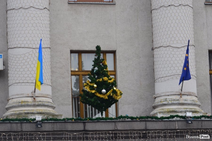 З урядових установ Луцька лише міська рада підійшла до питання прикрашення свого приміщення більш-менш серйозно.