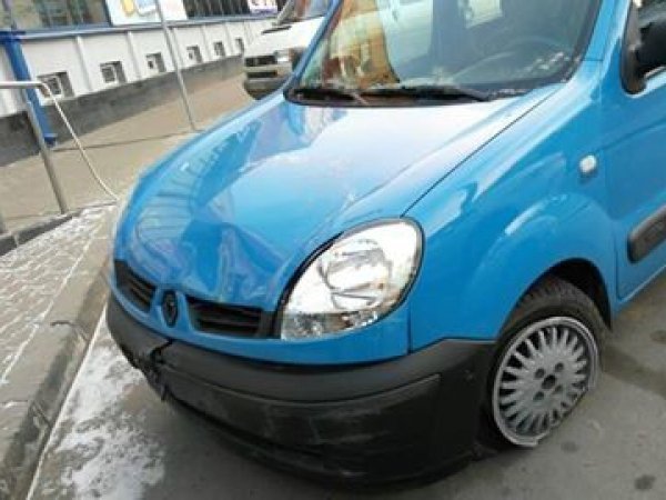 Під час зіткнення з огорожею машина зазнала серйозних пошкоджень: відірвало передній номер та спустило колесо.