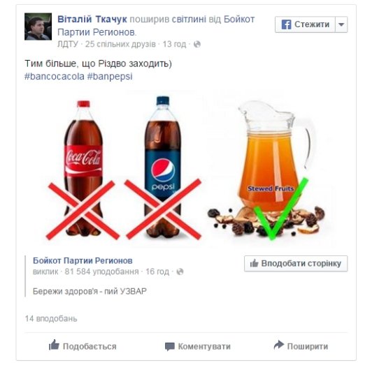 Осудливі дописи та тематичні демотиватори інтернет-користувачі мережі Facebook лишають під тегом #banCocaCola.
