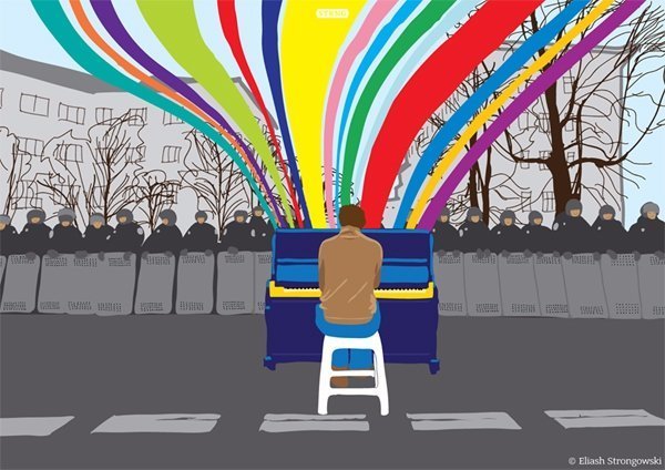 Стронґовський став відомим, зокрема, як автор листівки про євромайданівську Йолку.