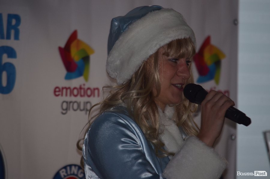 Тим часом дітей розважали Дід Мороз та Снігуронька, які постійно задавали їм веселі завдання: хто найшвидше розфарбує картинку в розмальовці, яку разом з фломастерами отримали діти, хто заспіває колядку та інше.