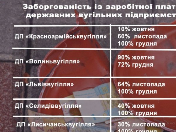 Зокрема, на ДП «Волиньвугілля» гірникам не виплатили 90% заробітку за жовтень, та 72% – за груденьщо становить 30 мільйонів гривень.