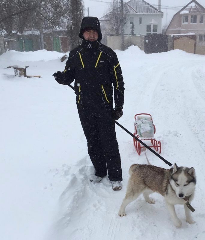 Однак, сніг виявився завеликим для собаки, відтак через деякий час санки довелось нести у руках.