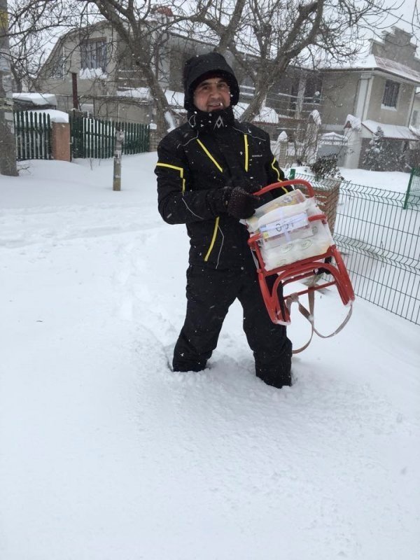 Одеса продовжує потерпати від снігової бурі, але креативним жителям міста це додає нових ідей. Так, одесити придумали їздити у супермаркет у собачій упряжці.