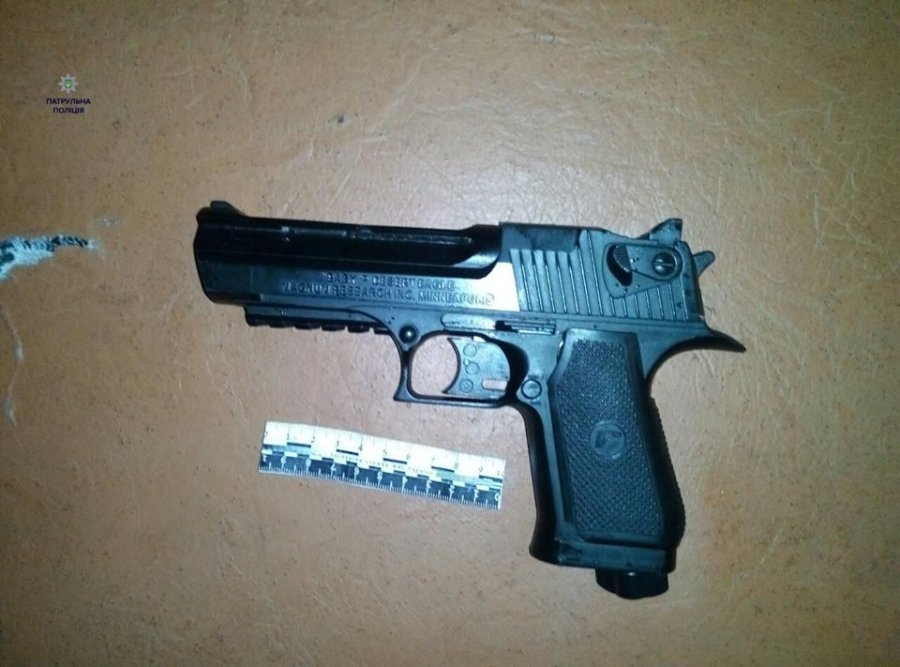 Поліцейські попросили чоловіків показати всі речі, які вони мали при собі. Хлопці були вдягнені у спортивні костюми та чорні шапки, саме про такий одяг нападників повідомила заявниця. При поверхневому огляді в одного з них виявили пістолет, який одразу ж вилучили. При затриманні чоловіки чинили опір.