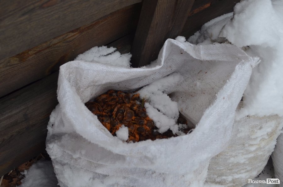 Найважливішою роботою єгерів у зимовий період є наповнення 50 ділянок «смаколиками» для тварин. А це – картопля, кукурудза, жом, до якого додають сіль, сіно, буряк і навіть абрикосові кісточки. Саме вони і приваблюють диких кабанів. Увесь корм привозять із навколишніх підприємств.