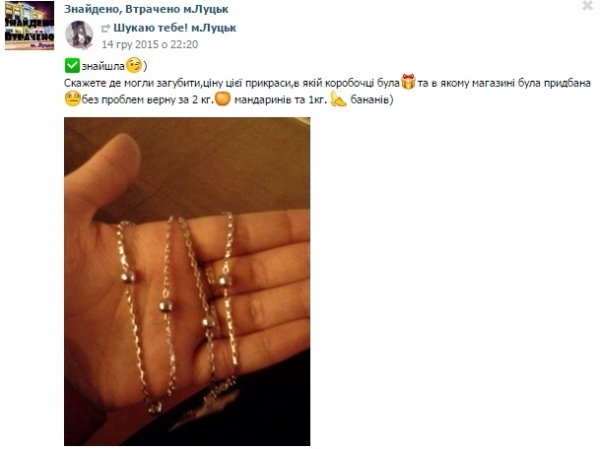 Завжди жевріє надія у серці, що ви знайдете, чи хтось поверне втрачену річ. Хтось просто змушений змиритись із тим, що повернути «своє» не вийде, хтось звертається до правоохоронних органів, а хтось пише про втрачене у соціальних мережах. Ось приклад таких оголошень у одній із луцьких спільнот: