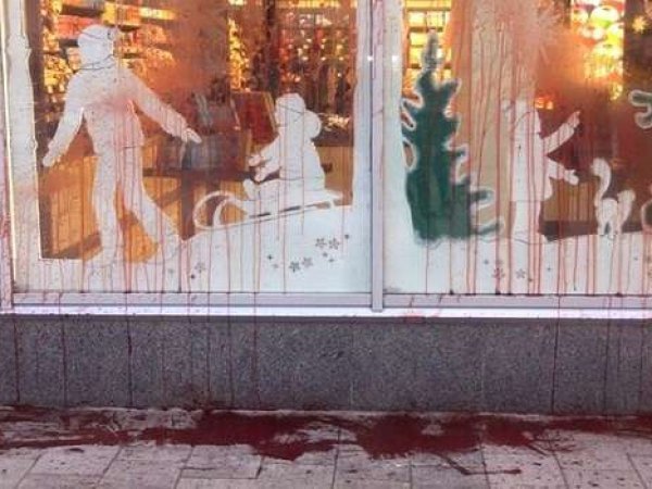 Як повідомлялося, біля фірмового магазину Roshen учасники маршу під крики «Смерть!» та «Геть шоколадного зрадника!» повісили опудало людини із шоколадною головою, а також облили червоною фарбою вітрини магазину.